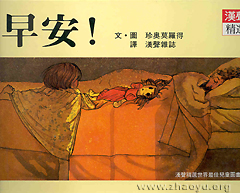 「早安」透過一個小女孩來描述一個家庭一天的開始,小女孩年紀雖小,卻能自己起床、盥洗、換衣服、整理背包,並且和父親一起做早餐,對照爸爸和媽媽的忙亂緊張,小女孩一切是那麼從容,不禁令人莞爾。這是一本獲獎無數的圖畫書,也是作者以自己家庭為藍本的第一本童書,分割畫面的運用靈活傳達出日常生活的節奏感以及如詩般的韻律,是大小讀者會心一笑的好書。繁體字,注音,適合三歲以上的小朋友。